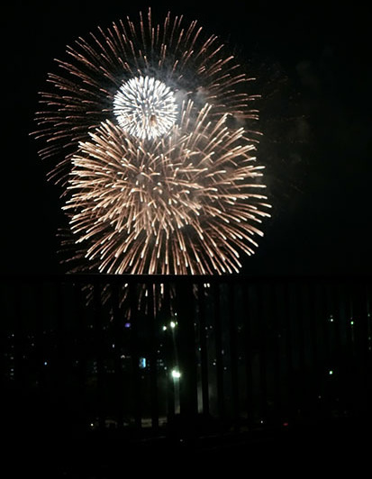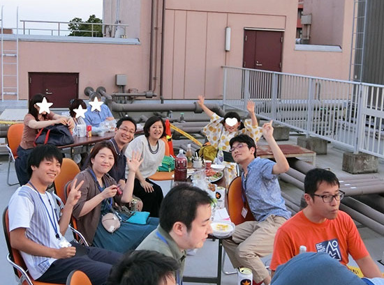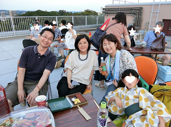 基生研の屋上にて、家族を交えて美味しく涼しく美しく楽しい夏の夜☆花火の後はなぜか大人もけん玉で大盛り上がり?!