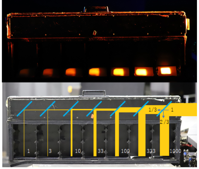 ミラーの位置や高さを変えることにより、光強度の調節が可能です。