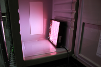 White and red LED lamps are arranged alternately on a 15 cm square plate. The wavelength of white is 430-780nm and the wavelength of red is 660nm. There are 2 sets, 2 lighting units and 1 power box.