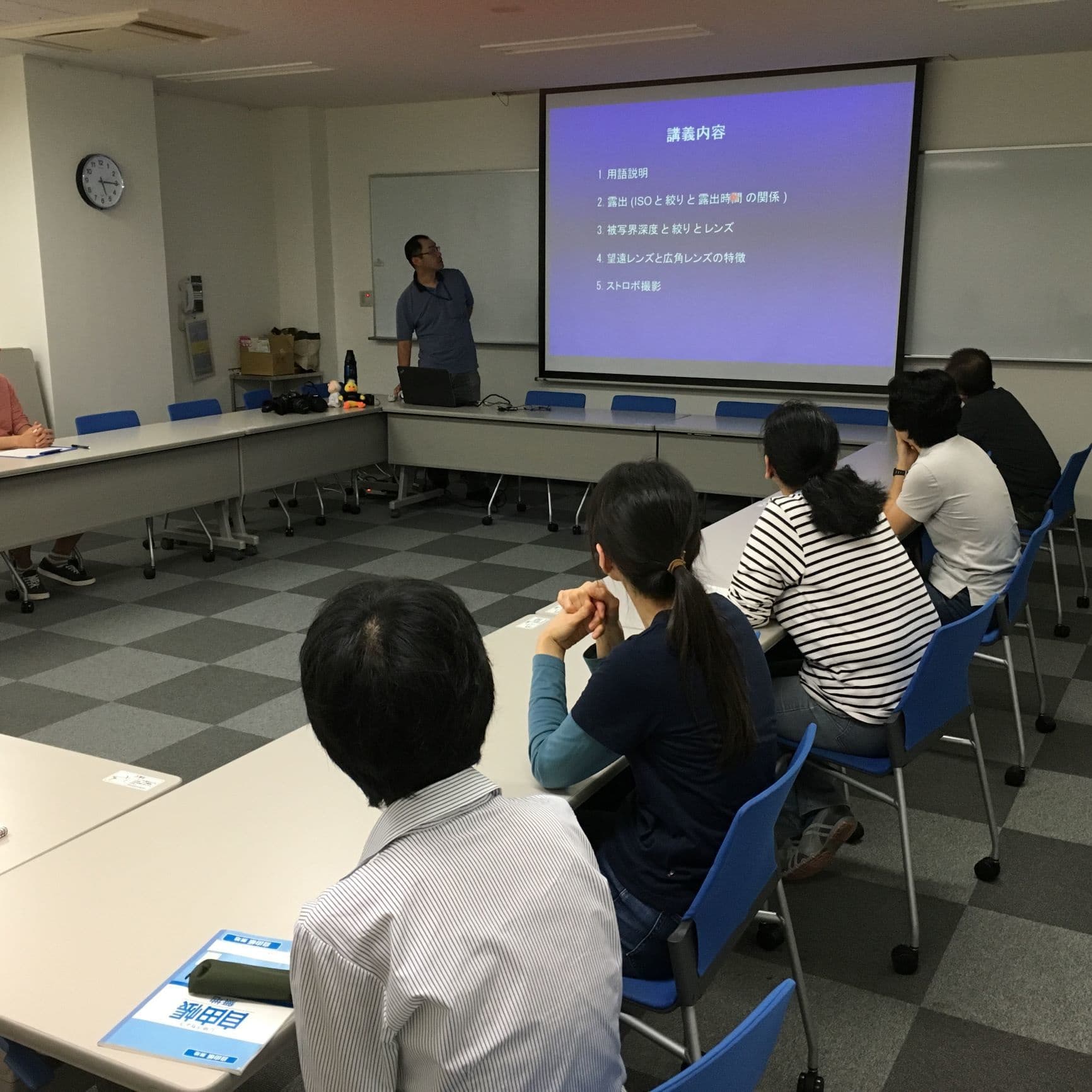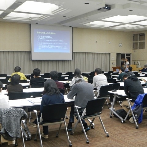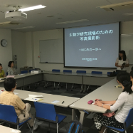 広報室の方を講師に招いて写真撮影技術について勉強しました。広報室は、研究材料である生き物から研究現場や研究会の集合写真など、様々な写真を撮影しています。講義では、デジタル一眼レフカメラでの撮影のテクニックやコツなど、多くの経験を通して得た知識を熱く語って頂きました。(講師:広報室・倉田さん)