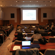 ポスターの前で活発な議論が交わされました。新たな試みとして、発表の前にスライドを使って1分間で内容についてプレゼンする時間を設けております。