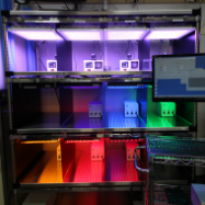 部屋の環境をその植物に適した温度、光条件に厳密に制御しています