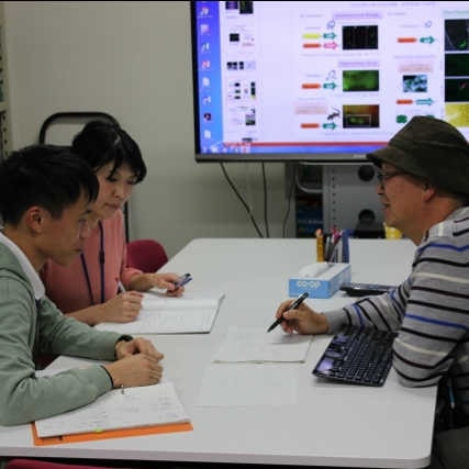 外国人との英語の研究打ち合わせにも参加し、より高度な技術支援を目指しています。