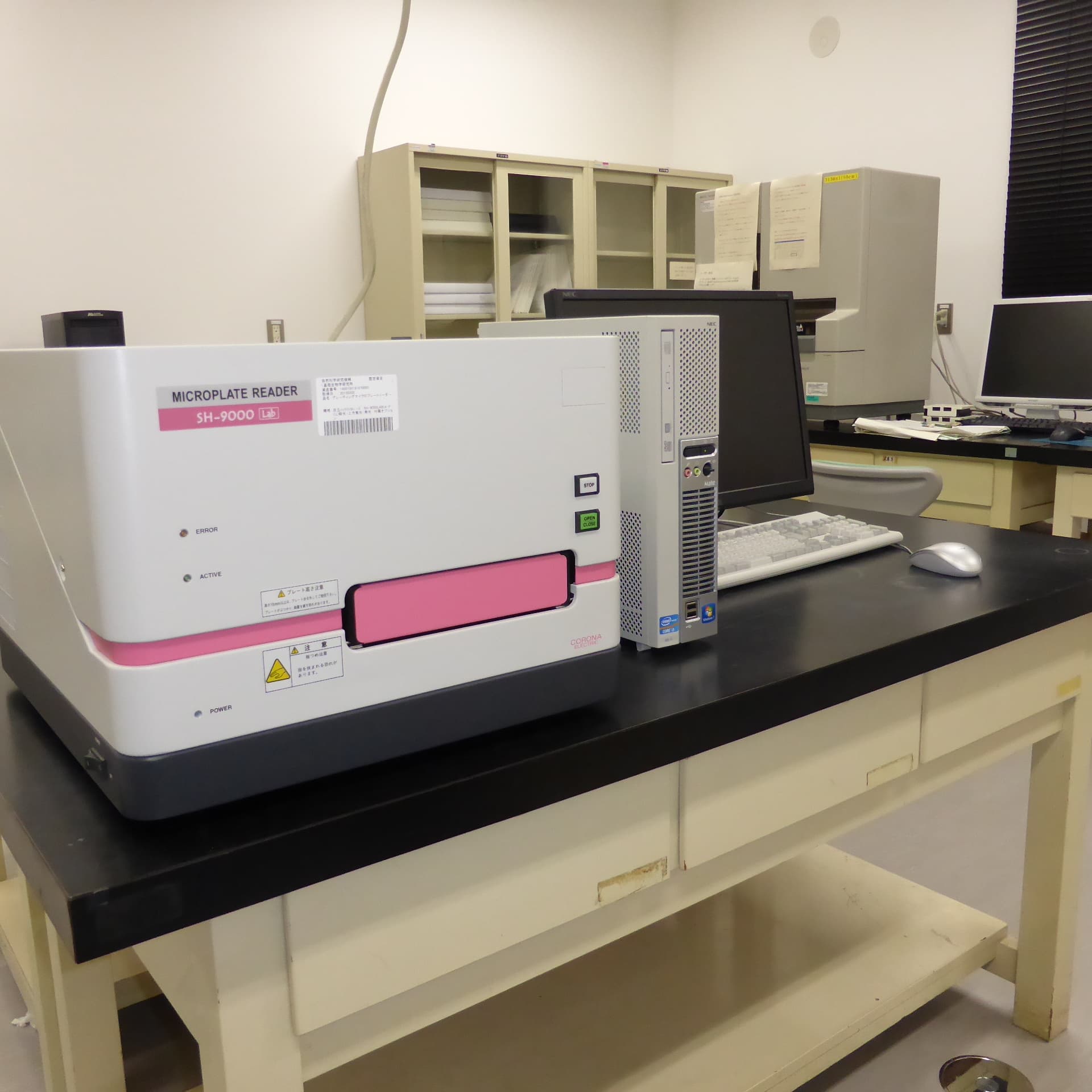 分子生物学の実験では温度コントロールが需要です。エリアごとに製氷機が置かれており、冷却に必要な氷がいつでも手に入ります。