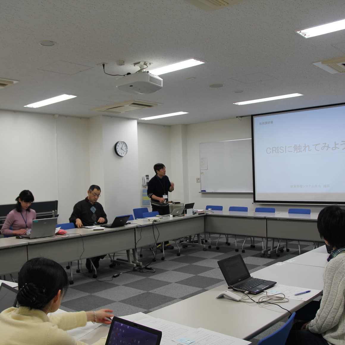 昨今、インターネットの普及によりコンピューターウイルス対策などの情報セキュリティの重要性が説かれています。技術課においてもセキュリティに対する意識を高めるため、情報管理解析室の職員が講師となり機構における対策について講義を行いました。(講師:中村)